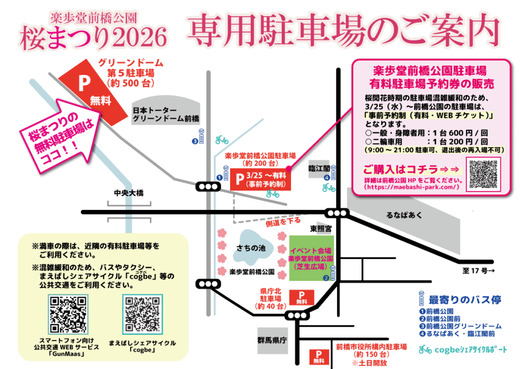 楽歩堂前橋公園桜まつり2026 専用駐車場のご案内
