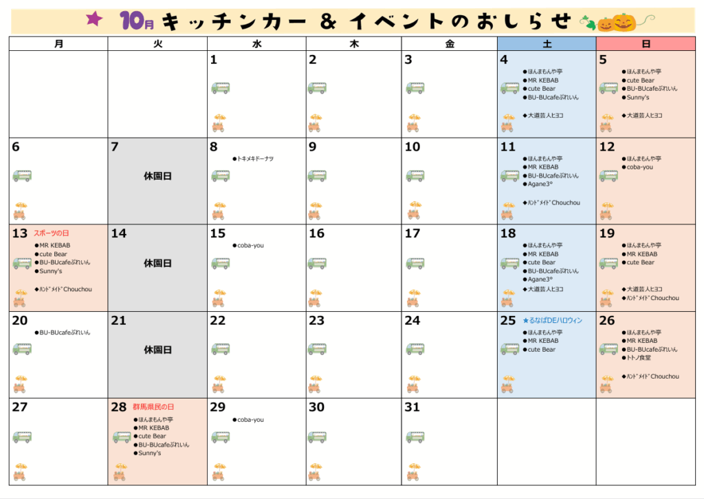 10月のキッチンカー出店スケジュールはこちら👆